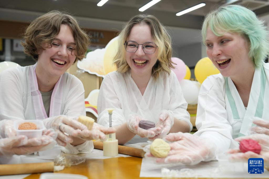 9月13日,位于重庆市北碚区的西南大学举行“月盈九州,此情共留”中外文化交流活动,中外师生学做月饼。