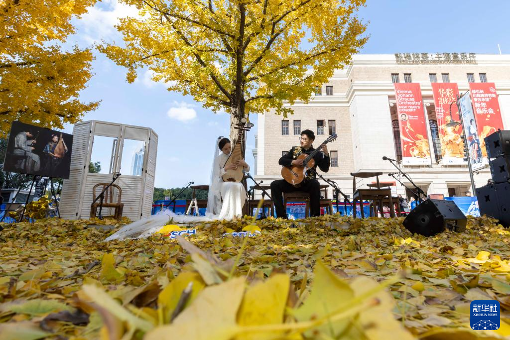 当日,一年一度的“银杏音乐会”在上海音乐厅南广场举行。在银杏树下,音乐家们倾情演绎,为市民带来沉浸式海派情境艺术盛宴。