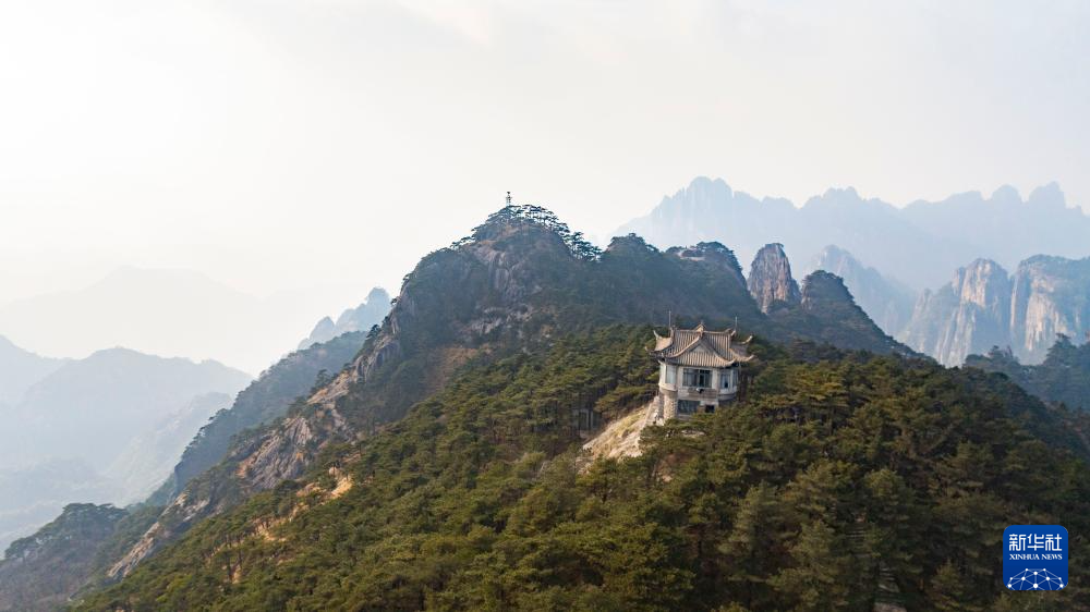 这是12月18日拍摄的黄山风景区平天矼瞭望哨(无人机照片)。