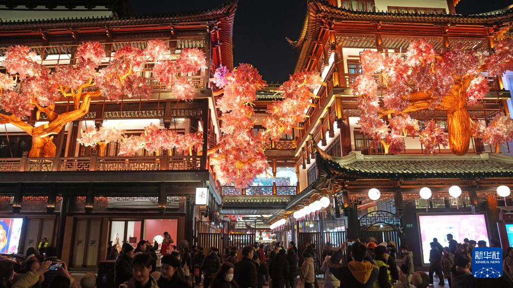2025年1月1日,人们在豫园商城的凝晖路赏灯。