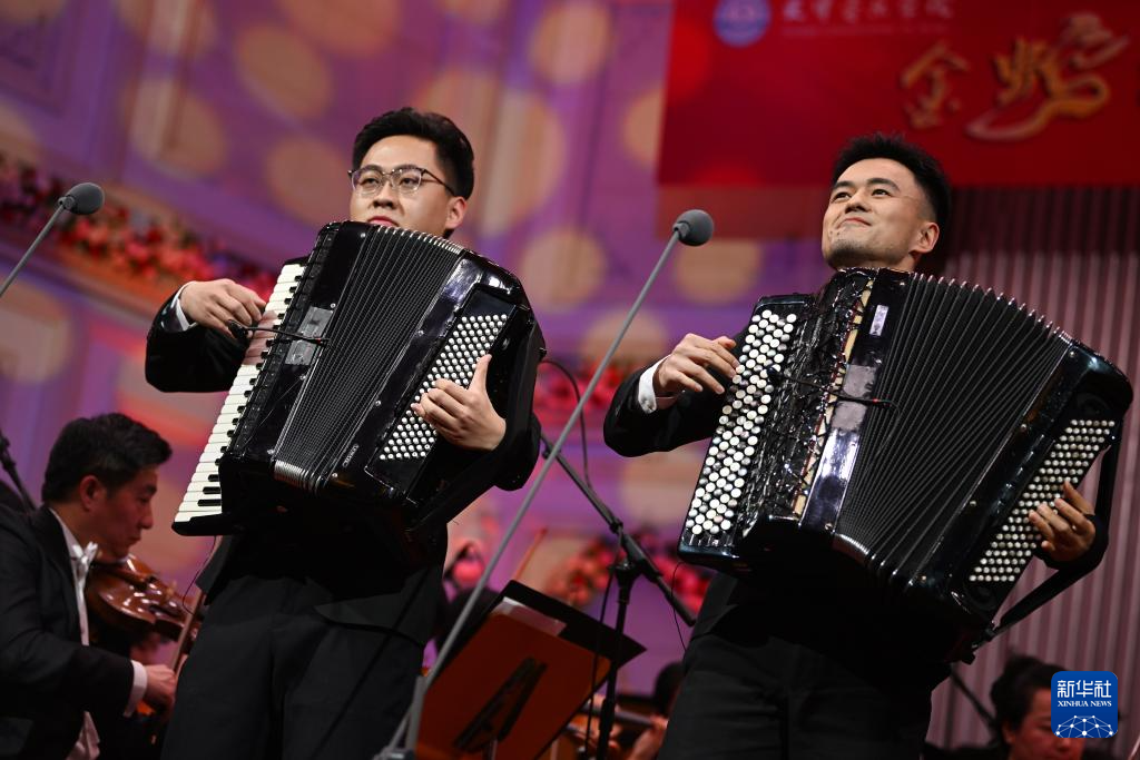1月2日,演员在音乐会上演奏《春风春潮》。