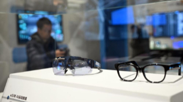 这是2月20日在网络发展新图景成就展上拍摄的AI运动眼镜。