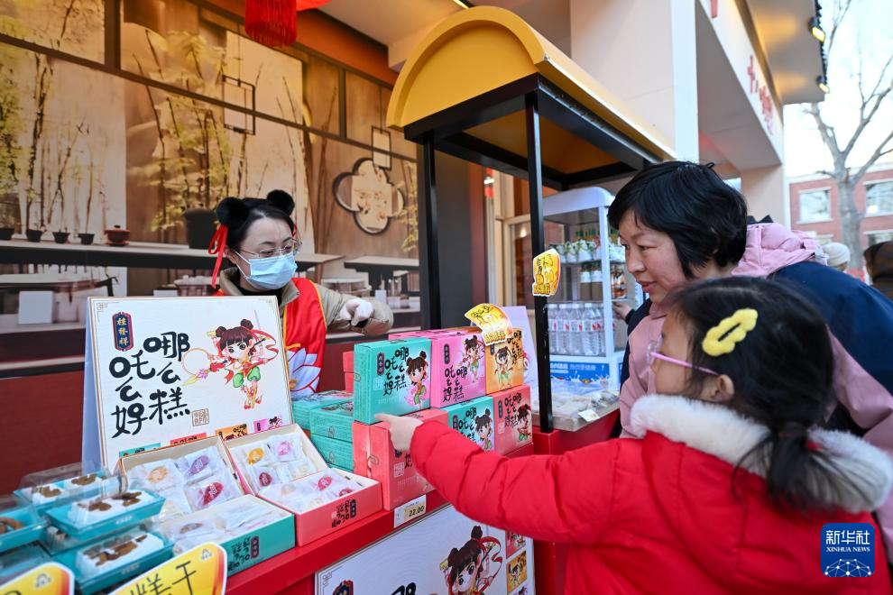 游客在天津哪吒小镇购买糕点产品(3月16日摄)。