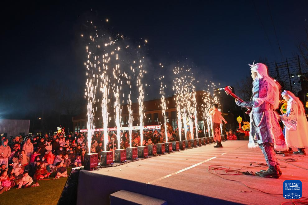 游客在天津哪吒小镇观看演出(3月16日摄)。