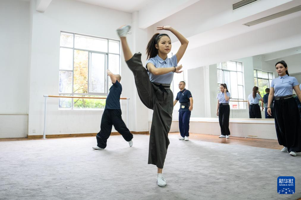 6月4日,在湖南省昆剧团练功房,青年演员欧龙娟(前)在练习基本功。