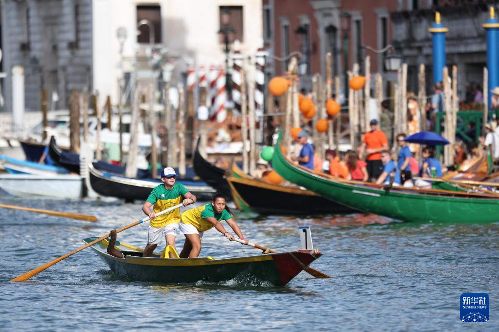 9月7日,在意大利威尼斯,人们参加赛船节。