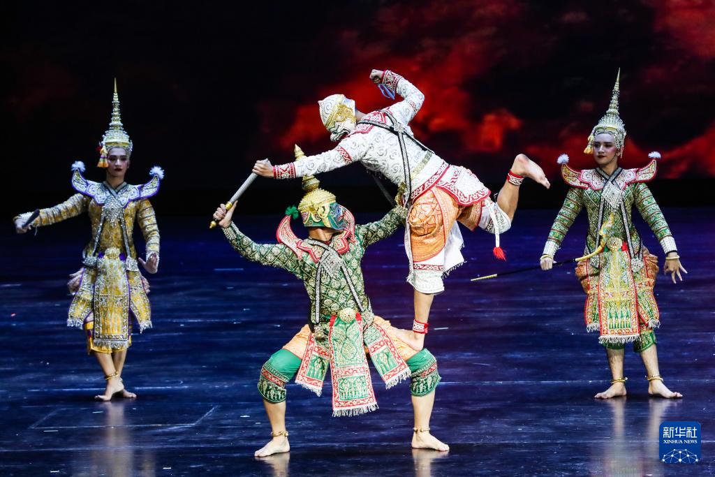 9月22日晚,在“相约敦煌”国际文化交流演出活动现场,来自泰国的演员表演孔剧《拉玛坚》选段。