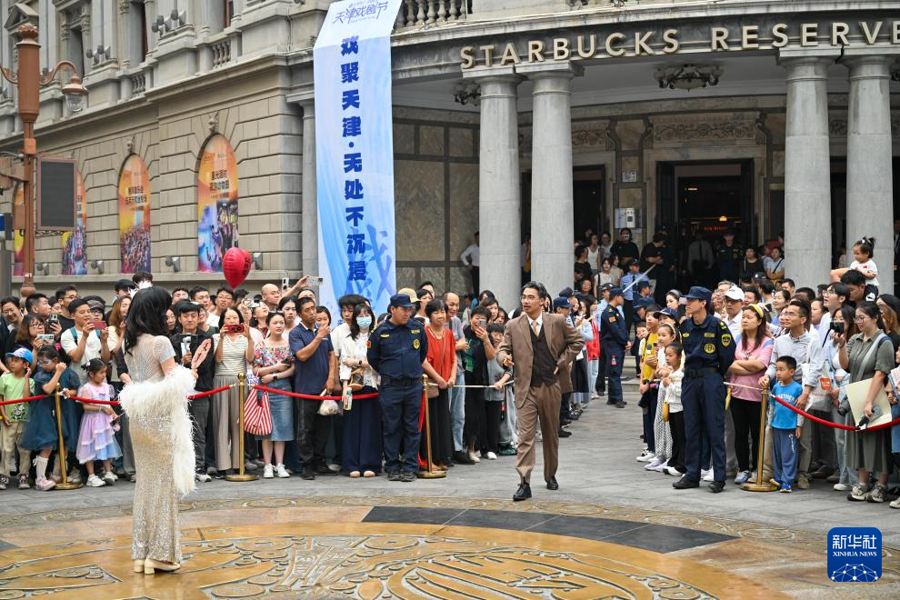 戏曲快闪让拥有89年历史的中国大戏院焕发新活力;金街上演沉浸式话剧《日出》,在故事发生地附近致敬经典;意式风情区马可波罗广场演绎歌剧《茶花女》选段,让观众“在天津遇见意大利”……