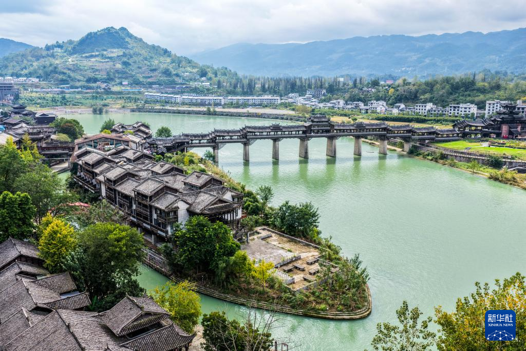 这是10月30日拍摄的濯水古镇和风雨廊桥景色(无人机照片)。