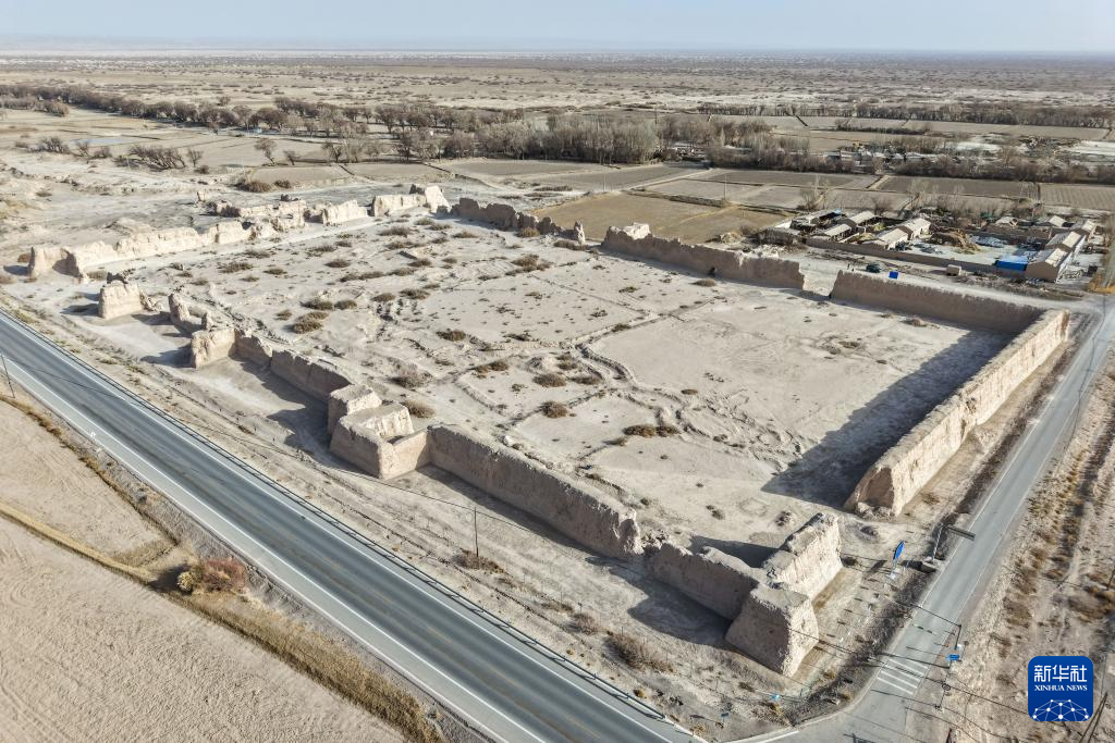 这是11月18日在甘肃省酒泉市瓜州县锁阳城镇常乐村拍摄的破城子遗址(无人机照片)。