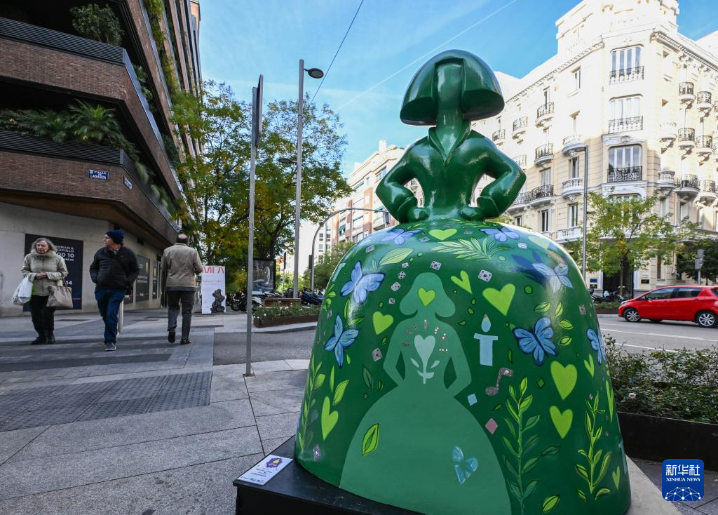 这是11月19日在西班牙马德里街头拍摄的“宫娥”主题雕塑。