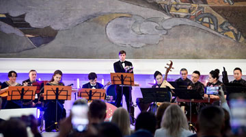 11月19日,在四川省汶川县城,身着民族服饰的妇女在非遗大巡游活动上表演。