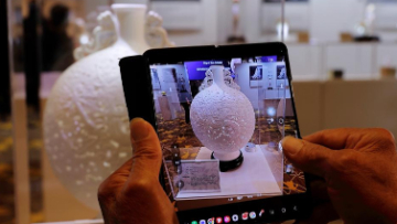 11月20日,游客在保山市永子棋院内的永子博物馆拍摄围棋艺术装置。
