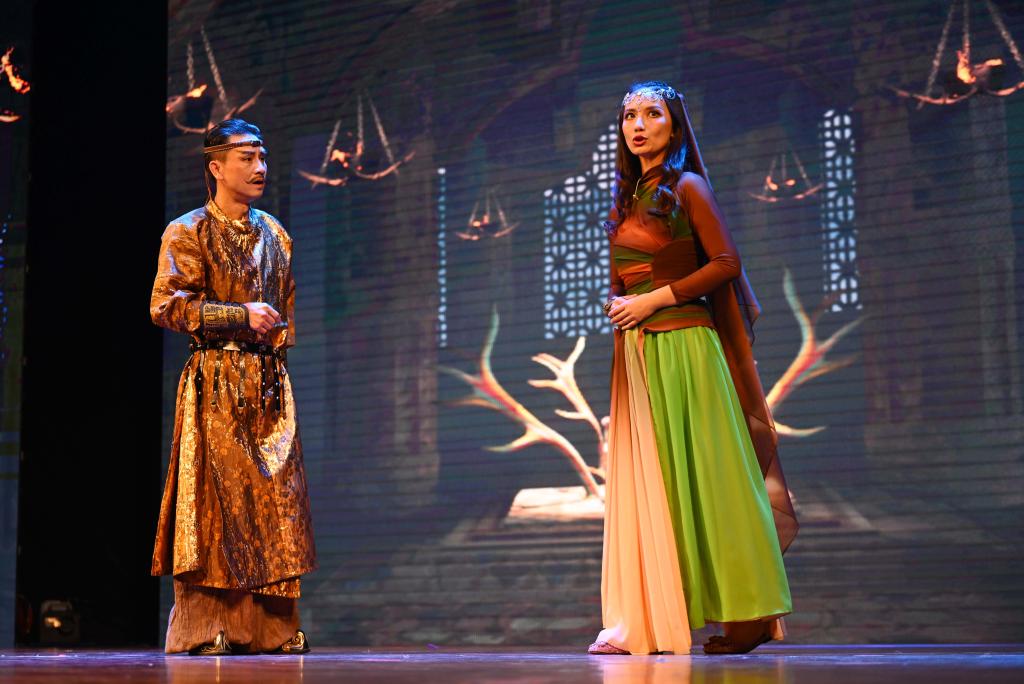 2024年5月30日,天津市儿童艺术剧团演员在河北区少年宫表演儿童戏剧《敦煌·九色鹿王》。新华社记者赵子硕 摄