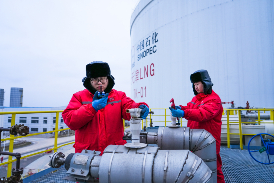 中国石化认真落实设备防冻防凝措施,增加生产和储运设施巡检频次,动态优化运行模式,确保安全平稳生产。强化产销运行统筹,重点抓好普光、涪陵、元坝、大牛地等主力气田稳产增产、全产全销。积极筹措进口LNG资源,天然气分公司进一步优化进口LNG船期安排,通过科学调度提升天然气接卸与外输效率,近日分别在天津、青岛LNG接收站安全平稳接卸14万吨LNG资源。密切关注供区气温变化、供需态势,做细应急预案,确保在特殊情况下通道互用、资源互供、用户互保,筑牢天然气安稳供应防线。