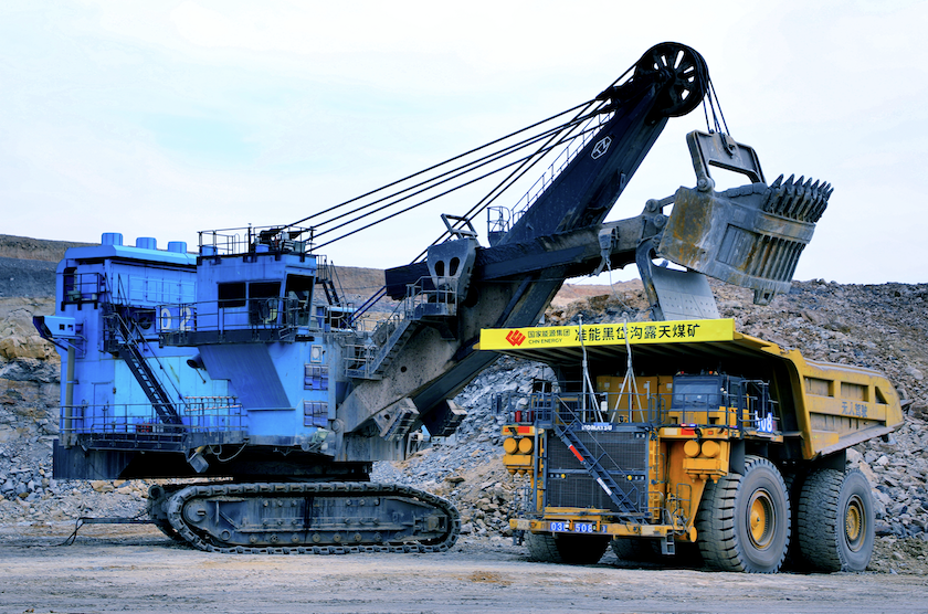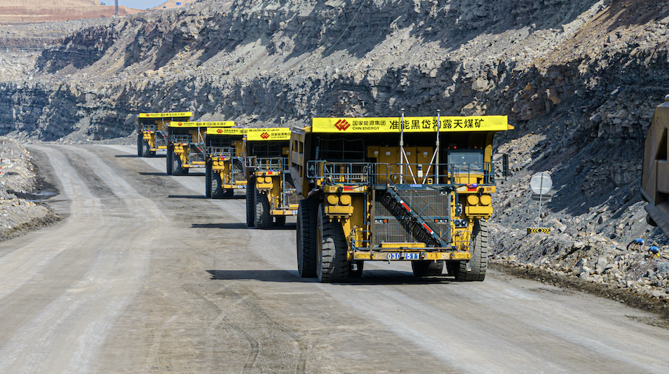 矿用无人驾驶卡车实现常态化混编作业。崔龙/摄
