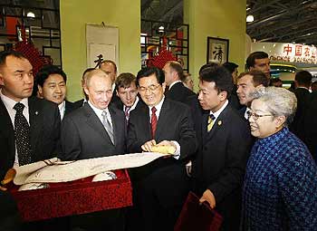 Hu, Putin open Chinese national exhibition in Moscow