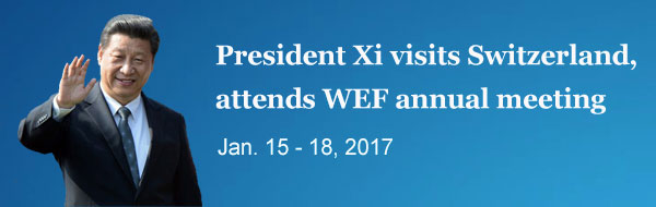 Xi paid a state visit to Switzerland, attended the 2017 annual meeting of the World Economic Forum in Davos and visited international organizations based in Switzerland, from Sunday to Wednesday.