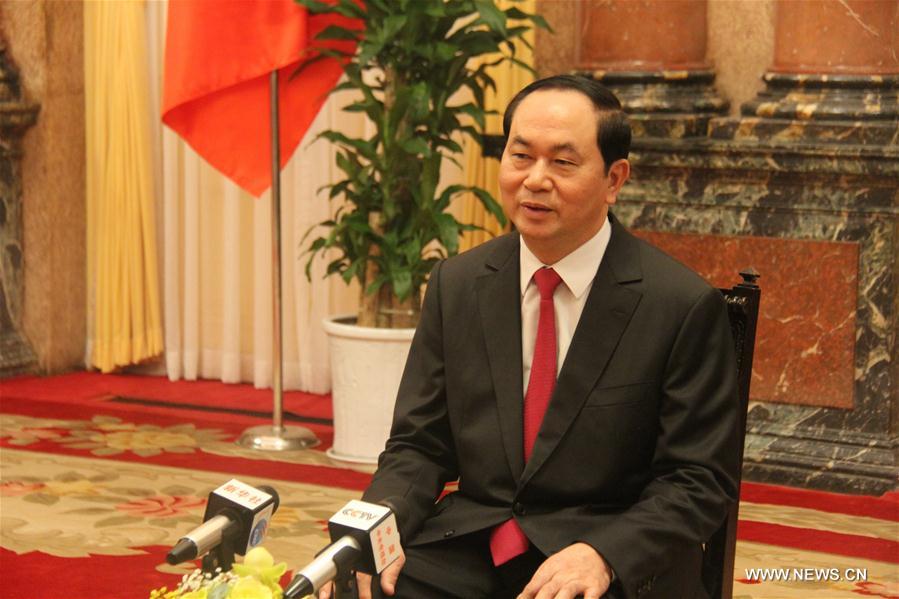 Vietnamese President Tran Dai Quang speaks during an interview with Xinhua News Agency in Hanoi, capital of Vietnam, on May 10, 2017. (Xinhua/Le Yanna)
