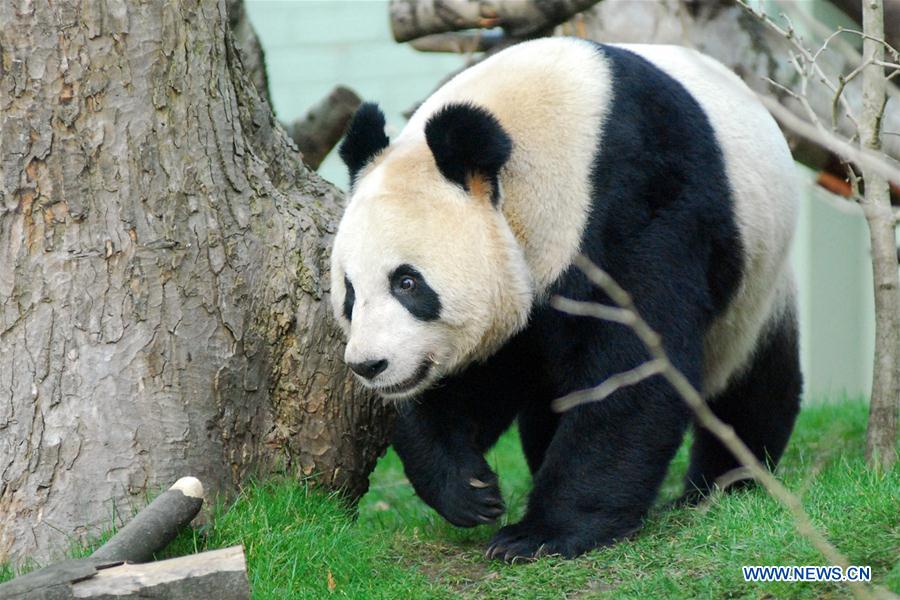 An undated photo provided by Edinburgh Zoo shows giant panda Tian Tian at Edinburgh Zoo, Scotland. Tian Tian, the only female Chinese giant panda in Britain, is pregnant, and a cub could be born in September, local media reported here on Aug. 24, 2017. Tian Tian, which means Sweetie in Chinese, was born on Aug. 24, 2003 at the Beijing Zoo in China. She is currently living with Yang Guang, meaning Sunshine in Chinese, at Edinburgh Zoo, Scotland. They are Britain's only pair of pandas. (Xinhua/Edinburgh Zoo)