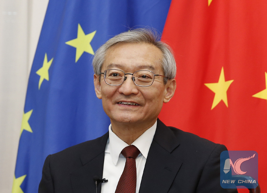 Ambassador Zhang Ming, head of the Chinese Mission to the EU, eyes a promising 2018 in an interview with Xinhua. (Xinhua/Ye Pingfan)