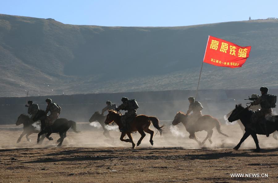 A PLA cavalry unit in Golog of NW China's Qinghai has a training on Jan. 3, 2018. (Xinhua photo)