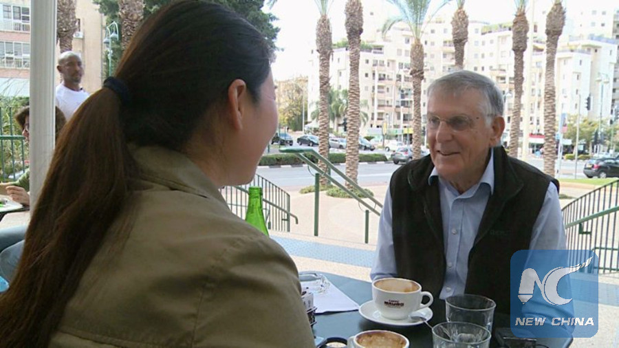 Dan Shechtman, the 2011 Nobel Prize winner in chemistry, is receiving an interview with Xinhua. (Xinhua Photo)