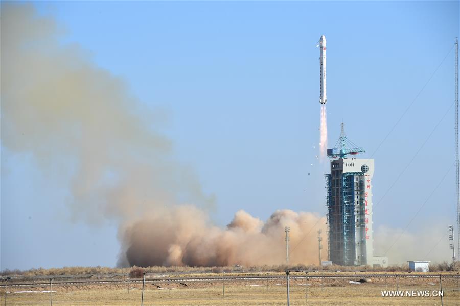 China launches a land resources exploration satellite into a preset orbit from the Jiuquan Satellite Launch Center in the Gobi desert, China, on Jan. 13, 2018. (Xinhua/Wang Jiangbo)