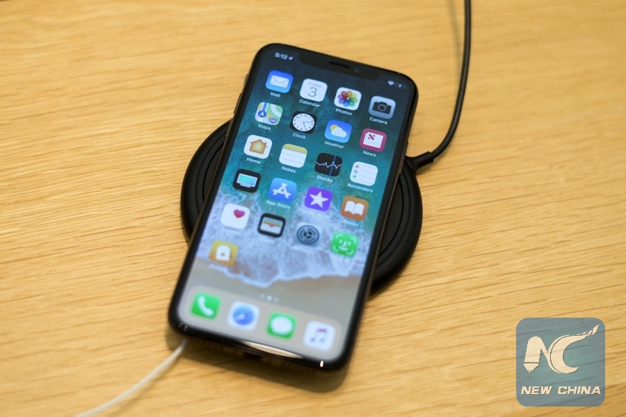 Photo taken on Nov. 3, 2017, shows the iPhone X at Apple World Trade Center in New York, the United States. (Xinhua/Li Muzi)