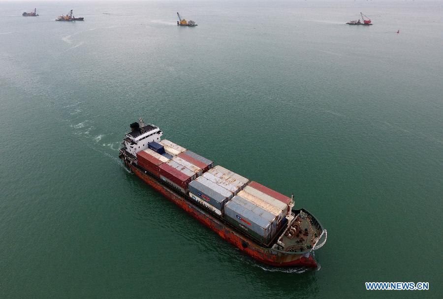 A cargo ship sails in Qinzhou port of south China's Guangxi Zhuang Autonomous Region,Jan. 10, 2018. By making full use of its geographical location and the potential of coastlines and border areas, Guangxi capitalized on its advantages and played a bigger role in the Belt and Road Initiative. Through ports and the Beibu Gulf Economic Zone, the trade cooperation between Guangxi and ASEAN countries gained great prospects. (Xinhua/Lu Boan)