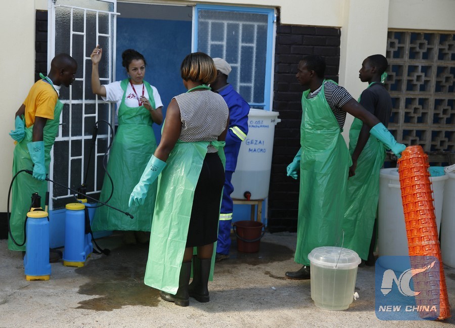 An official of Doctors Without Borders (DWB) works at a cholera command center at Chinengundu Clinic in Chegutu town, 100 km west of Harare, capital of Zimbabwe, on Jan. 22, 2018. (Xinhua/Shaun Jusa)