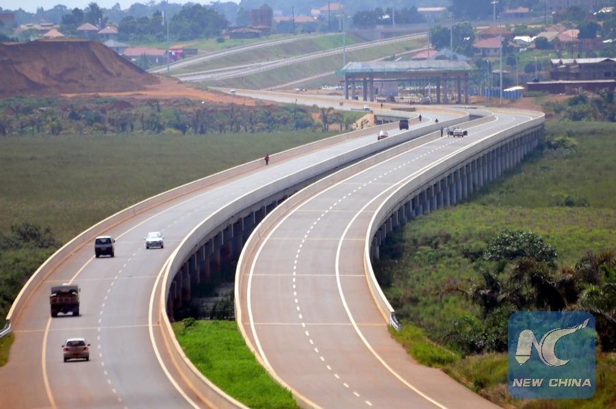 Photo taken on Nov. 15, 2017 shows an aerial view of Kampala-Entebbe expressway in Uganda, built by China Communications Construction Company Ltd (CCCC). (Xinhua/Joseph Kiggundu)