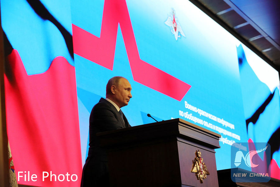 Russian President Vladimir Putin speaks during a conference on the Syrian operation at the Defence Ministry control centre in Moscow, Russia January 30, 2018. (KREMLIN PHOTO)
