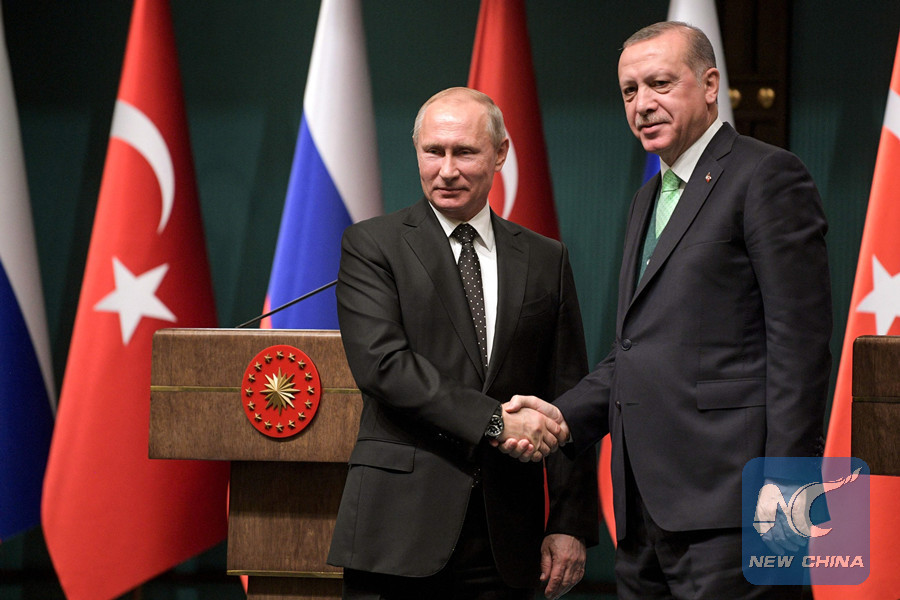 ANKARA, Feb. 8 (Xinhua) -- Turkish President Recep Tayyip Erdogan and his Russian counterpart Vladimir Putin agreed by phone early Thursday to hold next Syria summit between Turkey, Russia, Iran in Istanbul.