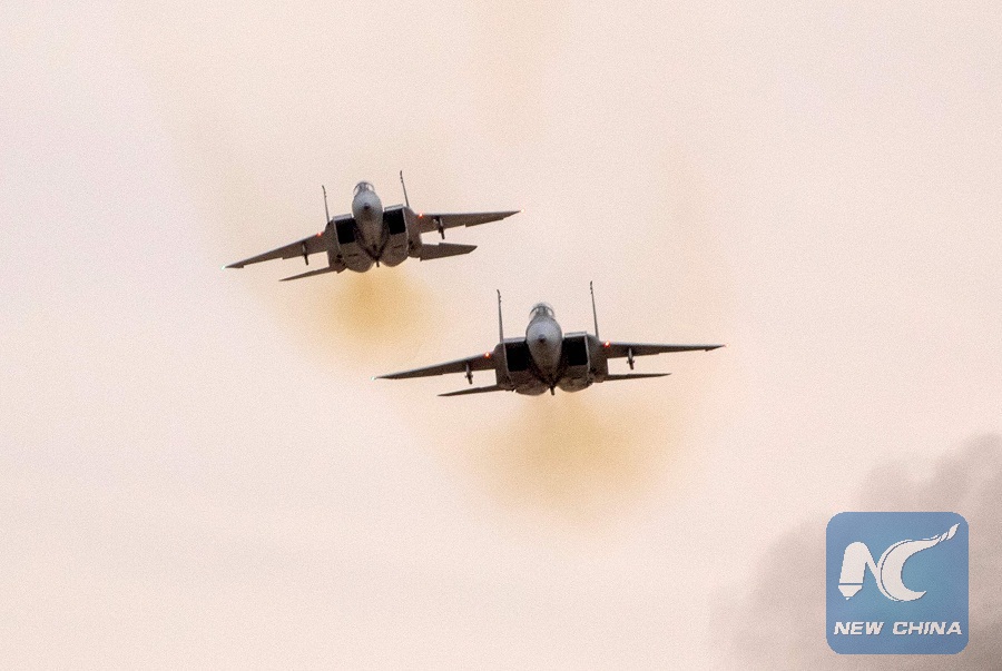 JERUSALEM, Feb. 17 (Xinhua) -- The Israeli Air Force (IAF) fighter jets targeted a total of six military targets in the Gaza Strip on Saturday, in response to the detonation of an explosive device on the border fence in southern Gaza.