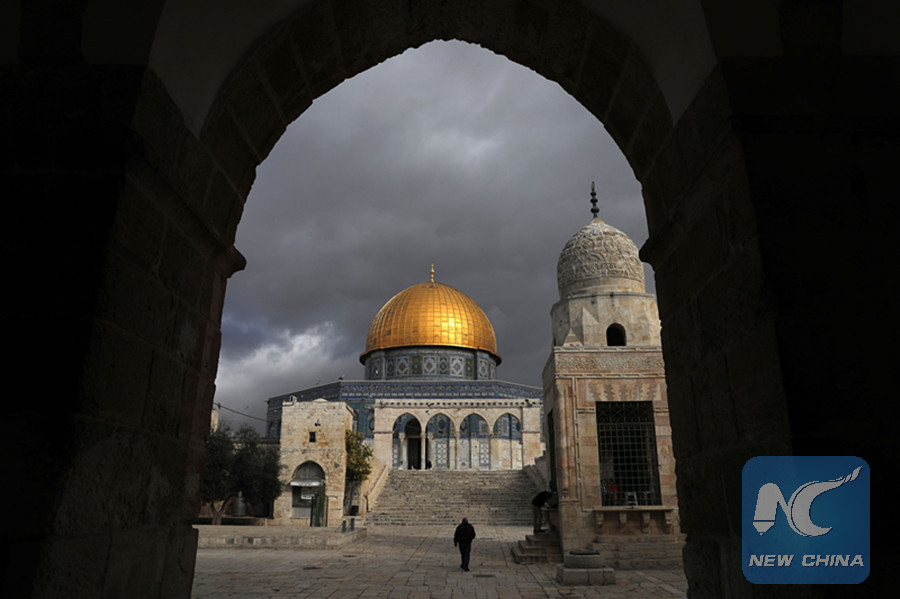 In this file photo taken on Jan. 23, 2018, Palestinians walk outside the Dome of the Rock in the al-Aqsa mosque compound in the disputed holy city of Jerusalem, which is at the center of the Israeli-Palestinian conflict. (AFP Photo)