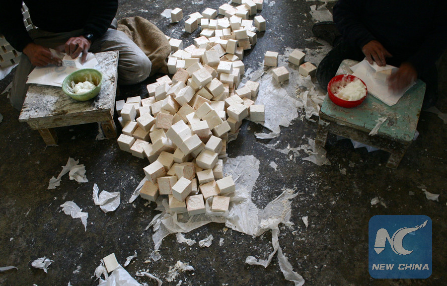 (File photo)A Palestinian worker wraps soap pieces at a traditional soap factory in the West Bank city of Nablus, on Jan 23, 2010. Soap making is one of the oldest industry in Nablus city. The components from olive oil, water and nature sodium obtained from local groves make the soap rich of its unique smell, a sign of the quality and purity of its ingredients. (Xinhua/Ayman Nobani)