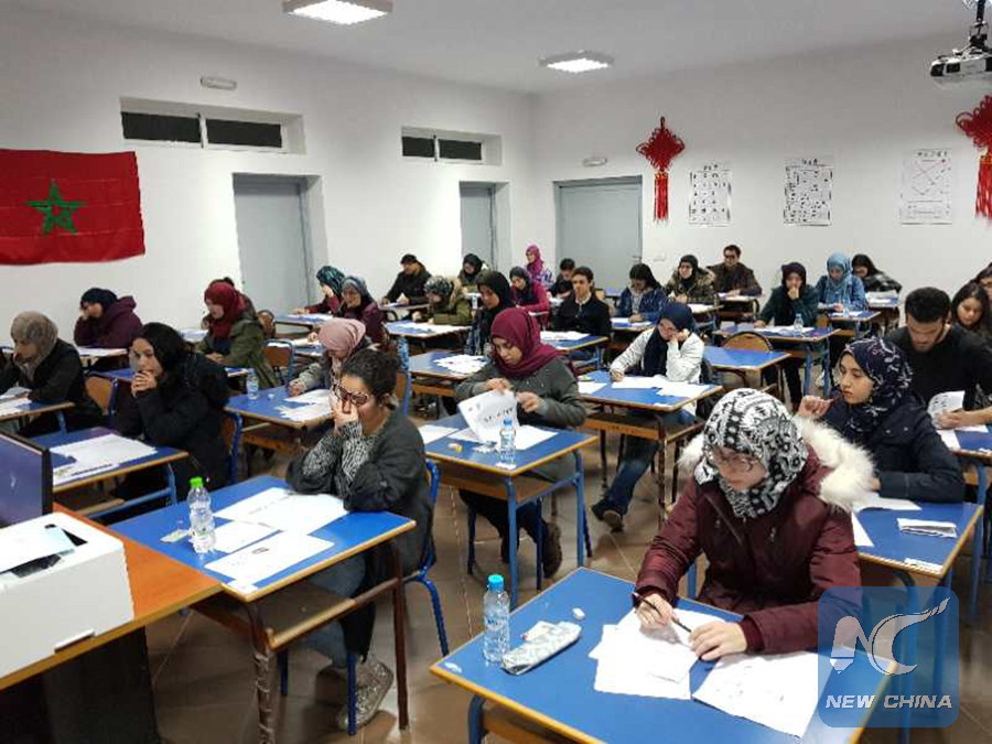 Moroccan students were taking the HSK (Hanyu Shuiping Kaoshi), or Chinese language proficiency test, in Tangier Confucius Institute in northern Morocco. (Xinhua photo)