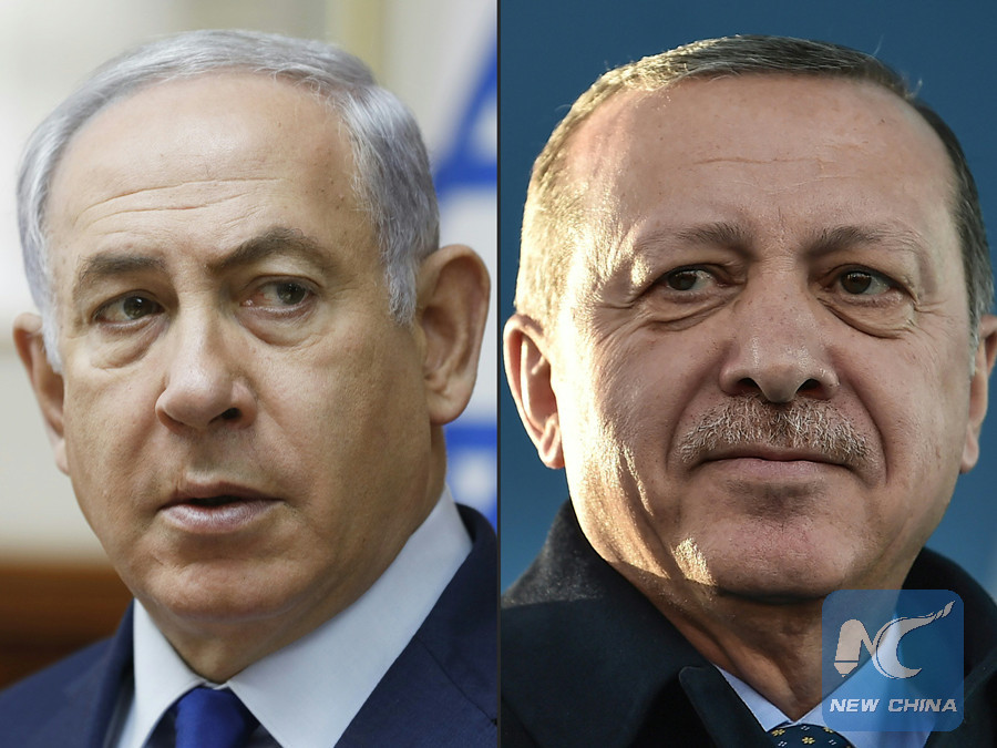 This combination of pictures created on April 1, 2018 shows a file photo taken on November 19, 2017 of Israel's Prime Minister Benjamin Netanyahu (L) attending the weekly cabinet meeting in Jerusalem and a file photo taken on December 15, 2017 of Turkish President Recep Tayyip Erdogan during the inauguration ceremony of Turkey's first automated urban metro line on the Asian side of Istanbul. Turkish President Recep Tayyip Erdogan accused Benjamin Netanyahu on April 1, 2018 of being "a terrorist" after the Israeli prime minister rejected Ankara's "moral lessons" over deadly clashes in Gaza. (AFP photo)