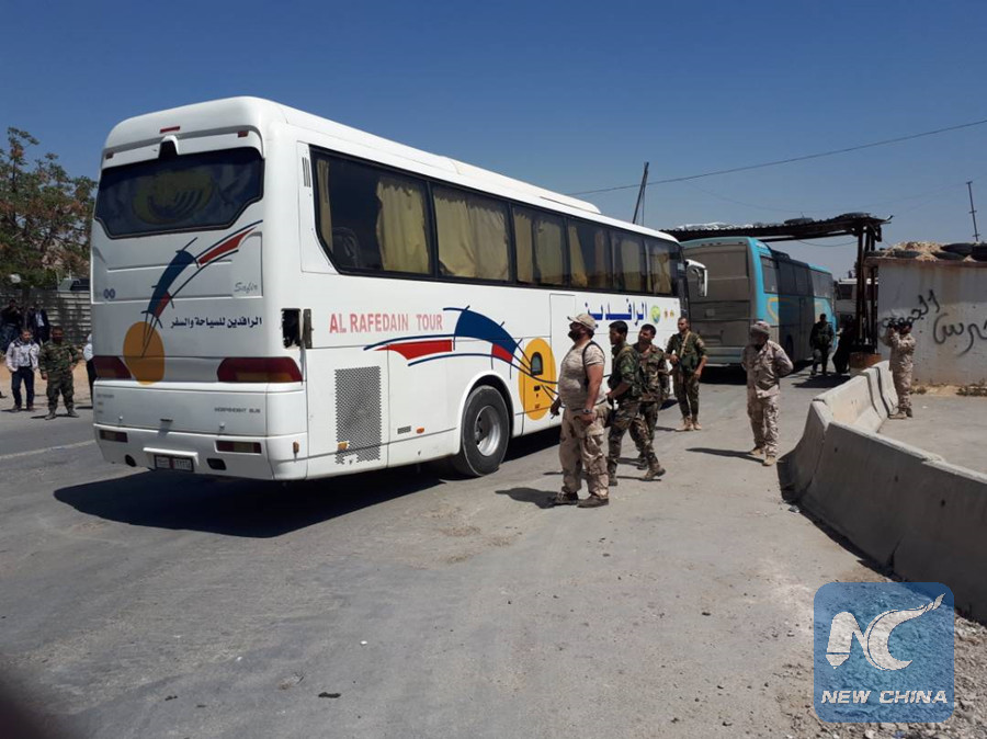 DAMASCUS, April 2 (Xinhua) -- A total of 484 militants of the Islam Army and their families started getting on buses that will transfer them from Douma district in Eastern Ghouta toward the rebel-held Jarablus city in the north, according to the state news agency SANA.