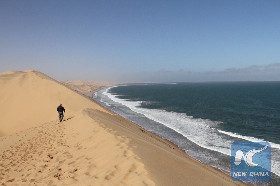 Photo taken on Aug. 26, 2014 shows the Sandwich Harbour view on the west coast of Namibia. (Xinhua/Gao Lei)