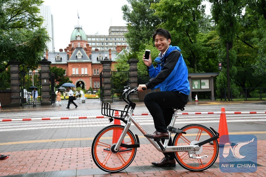 A man rides a Mobike in Sapporo, Japan, on Aug. 22, 2017. (Xinhua/Hua Yi)