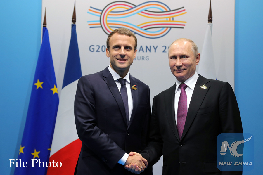 MOSCOW, April 23 (Xinhua) -- Russian President Vladimir Putin and his French counterpart Emmanuel Macron on Monday agreed that the two countries will strive to resume the peace talks on Syria, the Kremlin said.