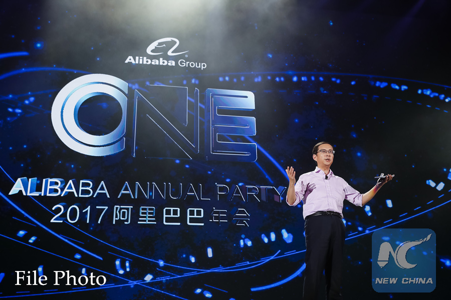 Zhang Yong, CEO of China's e-commerce giant Alibaba, addresses the Alibaba Annual Party celebrating the 18th anniversary of the Alibaba Group in Hangzhou, capital of east China's Zhejiang Province, Sept. 8, 2017.