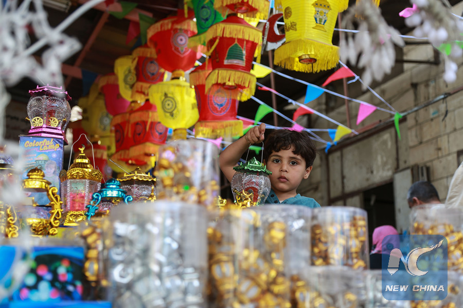 A Palestinian child holds a traditional Ramadan lantern at a market, ahead of the Islamic holy month of Ramadan, in Gaza City, on May 16, 2018. (Xinhua/Stringer)