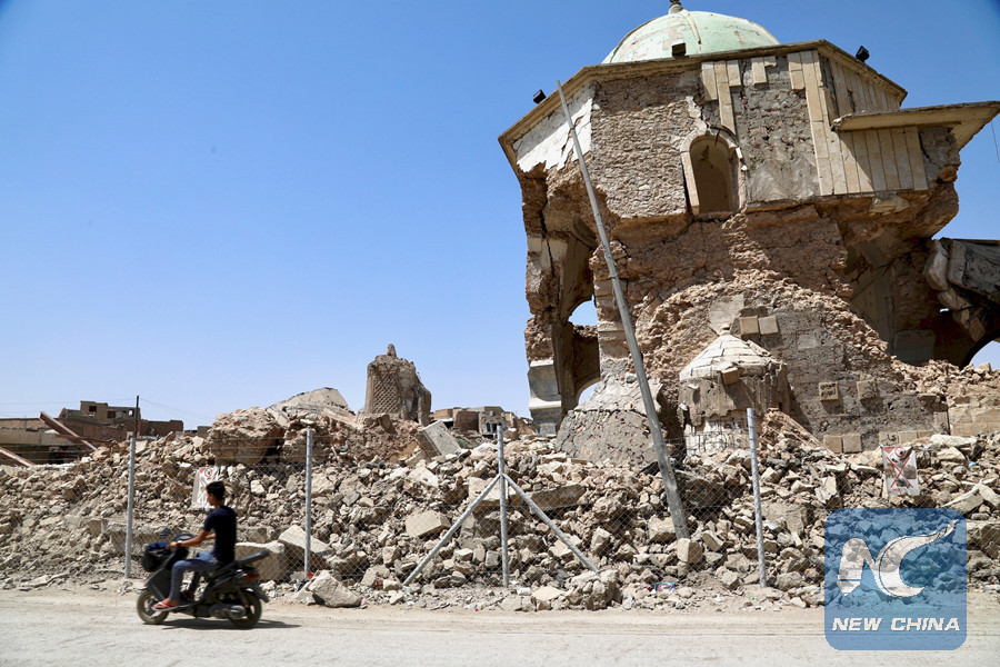 MOSUL, Iraq, July 9 (Xinhua) -- One year after liberation from the Islamic State (IS), Iraq's second largest city of Mosul still lies in ruins far from rehabilitation. Smell of rotting bodies comes from under the rubbles, and residents were struggling to rebuild their life.