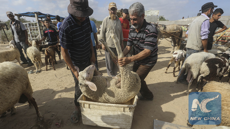 GAZA, Aug. 19 (Xinhua) -- On the eve of Muslims' al-Adha feast, livestock markets in the Palestinian Gaza Strip has witnessed a low customer turnout due to the severe economic deterioration caused by the ongoing Israeli blockade which has been in place for more than a decade.