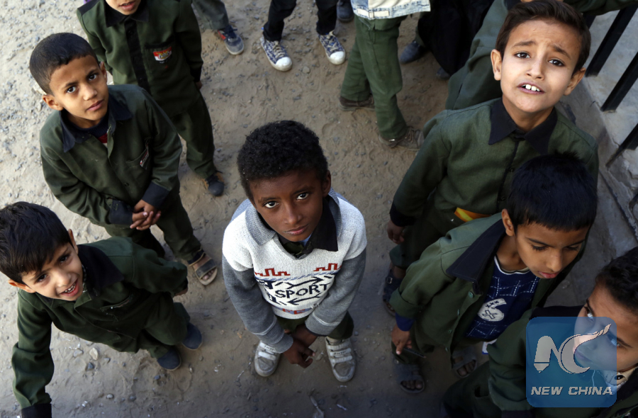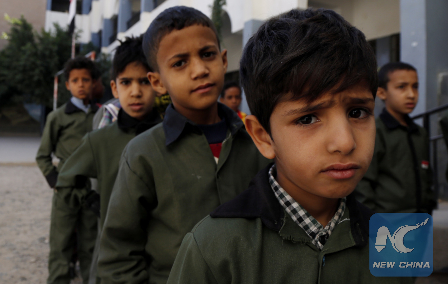 SANAA, Oct. 10 (Xinhua) -- In a public elementary school in Yemen's rebel-held capital Sanaa, more than 200 pupils crammed inside a small classroom that normally accommodated no more than 20 students.