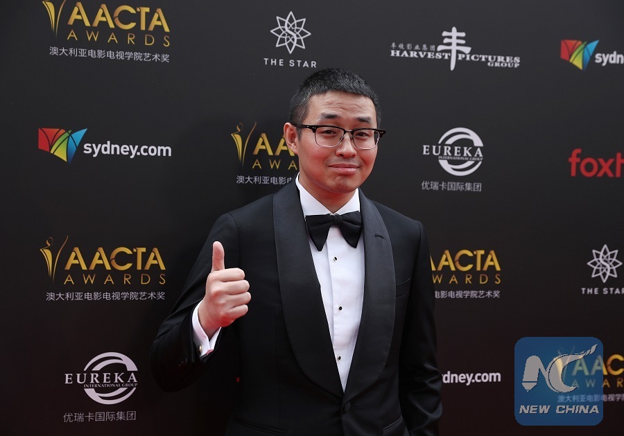 Wen Muye, director of the Chinese film "Dying to Survive", poses for photos on the red carpet of the Australian Academy of Cinema and Television Arts (AACTA) awarding ceremony in Sydney, Australia, on Dec. 5, 2018. (Xinhua/Bai Xuefei)