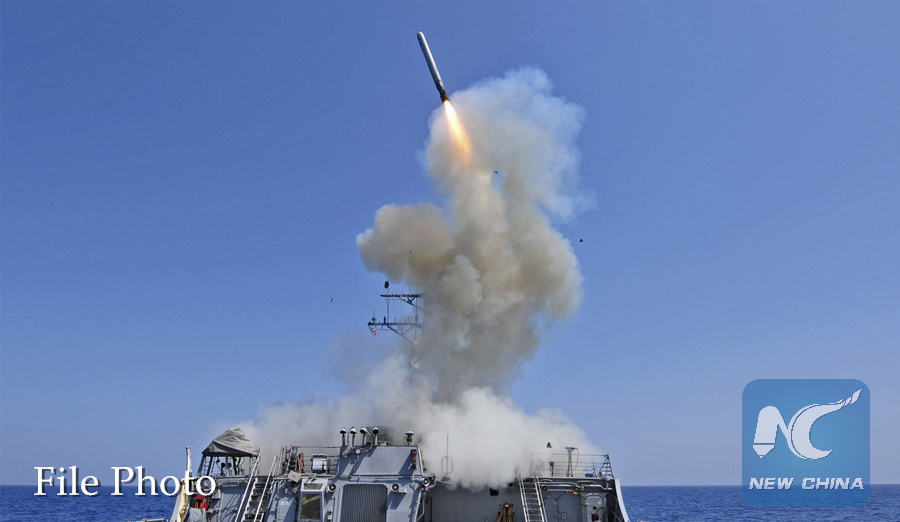 The guided-missile destroyer USS Barry launches a Tomahawk cruise missile from the ship's bow in the Mediterranean Sea in this U.S. Navy handout photo taken March 29, 2011. (REUTERS PHOTO)